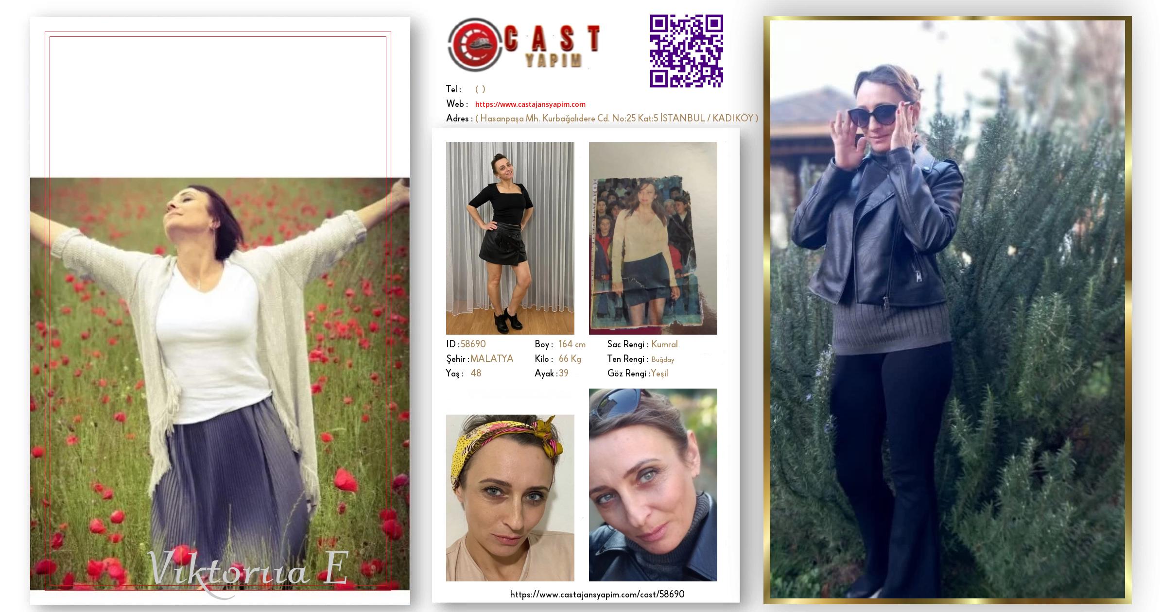 Merhaba, ben Vıktorııa E. MALATYA şehrinde yaşıyorum ve 48 yaşındayım. Genel özelliklerim arasında boyum 164 cm, kilom 66 kg, saç rengim Kumral, göz rengim Yeşil, ten rengim Buğday.