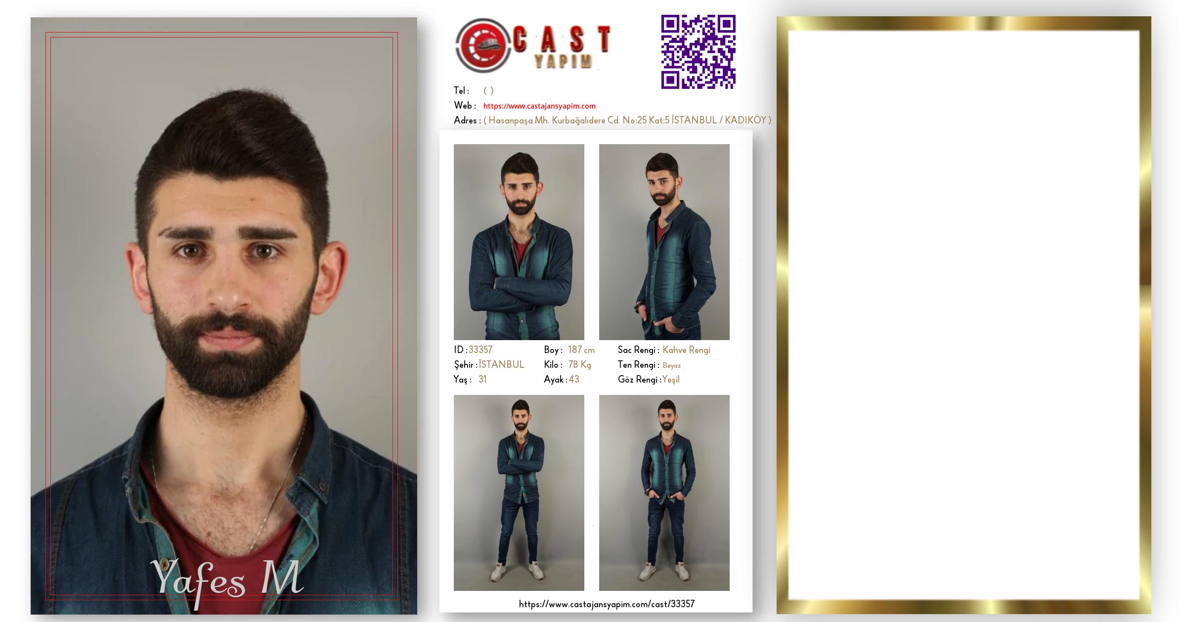 Merhaba, ben Yafes. İSTANBUL şehrinde yaşıyorum ve 31 yaşındayım. Genel özelliklerim arasında boyum 187 cm, kilom 78 kg, saç rengim Kahve Rengi, göz rengim Yeşil, ten rengim Beyaz.