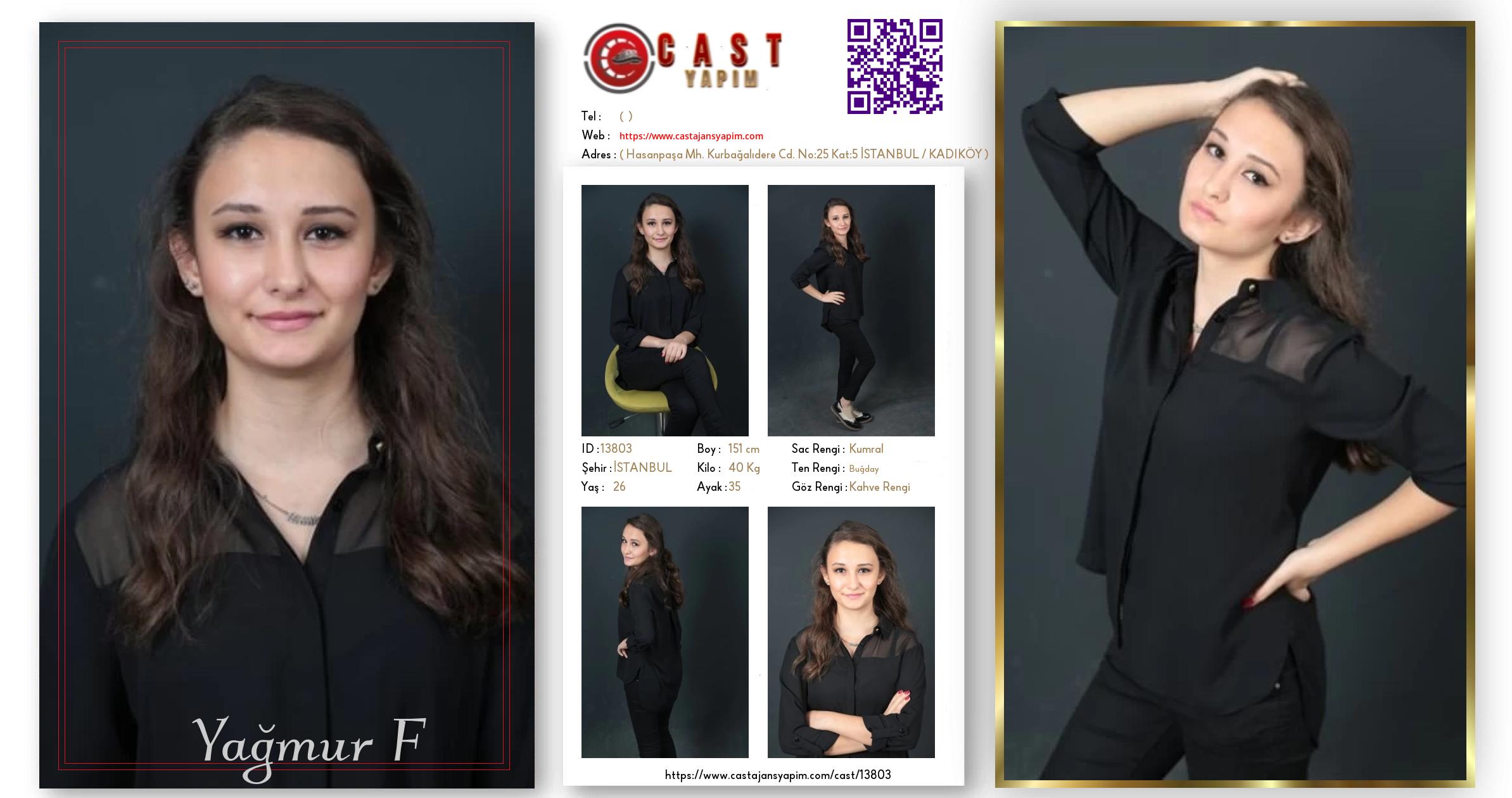 Merhaba, ben Yağmur. İSTANBUL şehrinde yaşıyorum ve 26 yaşındayım. Genel özelliklerim arasında boyum 151 cm, kilom 40 kg, saç rengim Kumral, göz rengim Kahve Rengi, ten rengim Buğday.