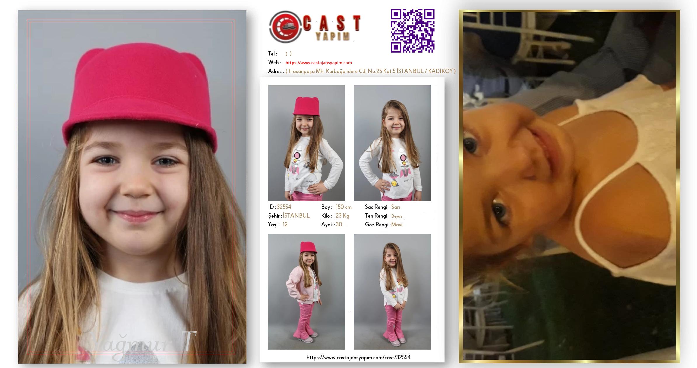 Merhaba, ben Yağmur Elisa. İSTANBUL şehrinde yaşıyorum ve 12 yaşındayım. Genel özelliklerim arasında boyum 150 cm, kilom 23 kg, saç rengim Sarı, göz rengim Mavi, ten rengim Beyaz.