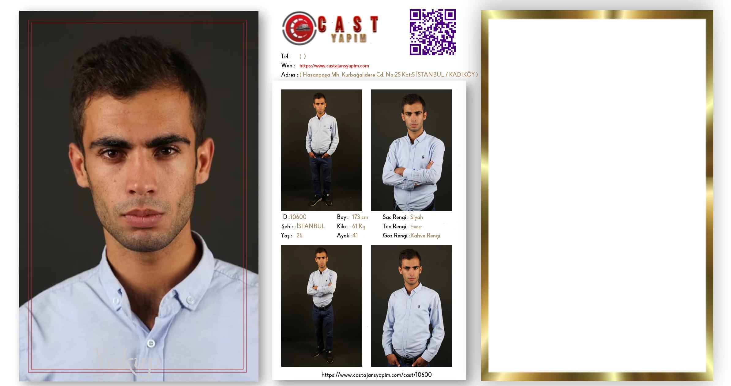 Merhaba, ben Yakup. İSTANBUL şehrinde yaşıyorum ve 26 yaşındayım. Genel özelliklerim arasında boyum 173 cm, kilom 61 kg, saç rengim Siyah, göz rengim Kahve Rengi, ten rengim Esmer.