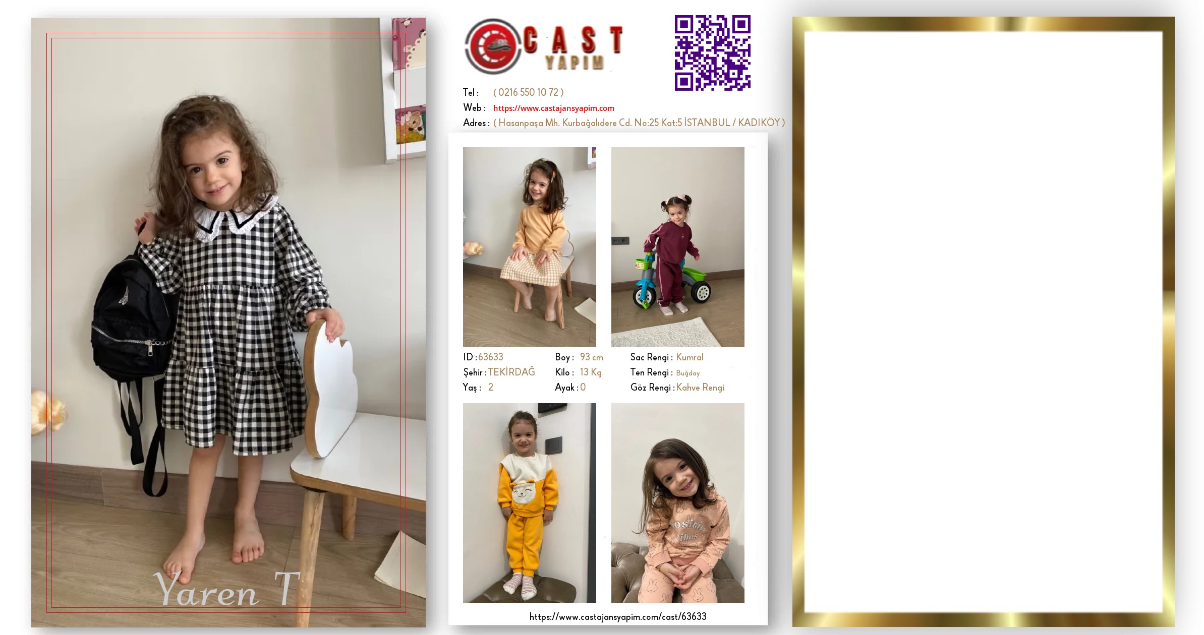 Merhaba, ben Yaren. TEKİRDAĞ şehrinde yaşıyorum ve 3 yaşındayım. Genel özelliklerim arasında boyum 93 cm, kilom 13 kg, saç rengim Kumral, göz rengim Kahve Rengi, ten rengim Buğday.