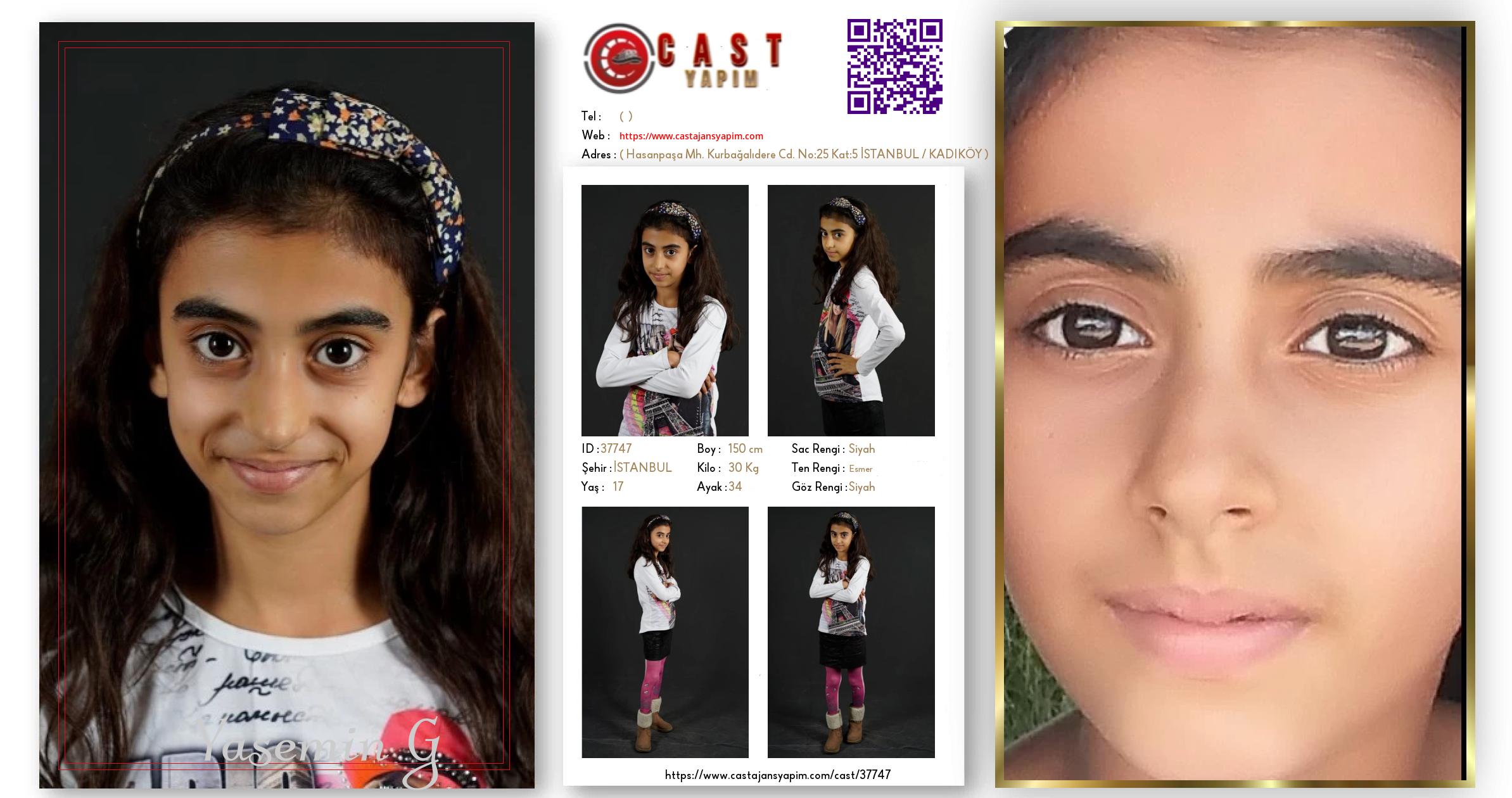 Merhaba, ben Yasemin. İSTANBUL şehrinde yaşıyorum ve 17 yaşındayım. Genel özelliklerim arasında boyum 150 cm, kilom 30 kg, saç rengim Siyah, göz rengim Siyah, ten rengim Esmer.