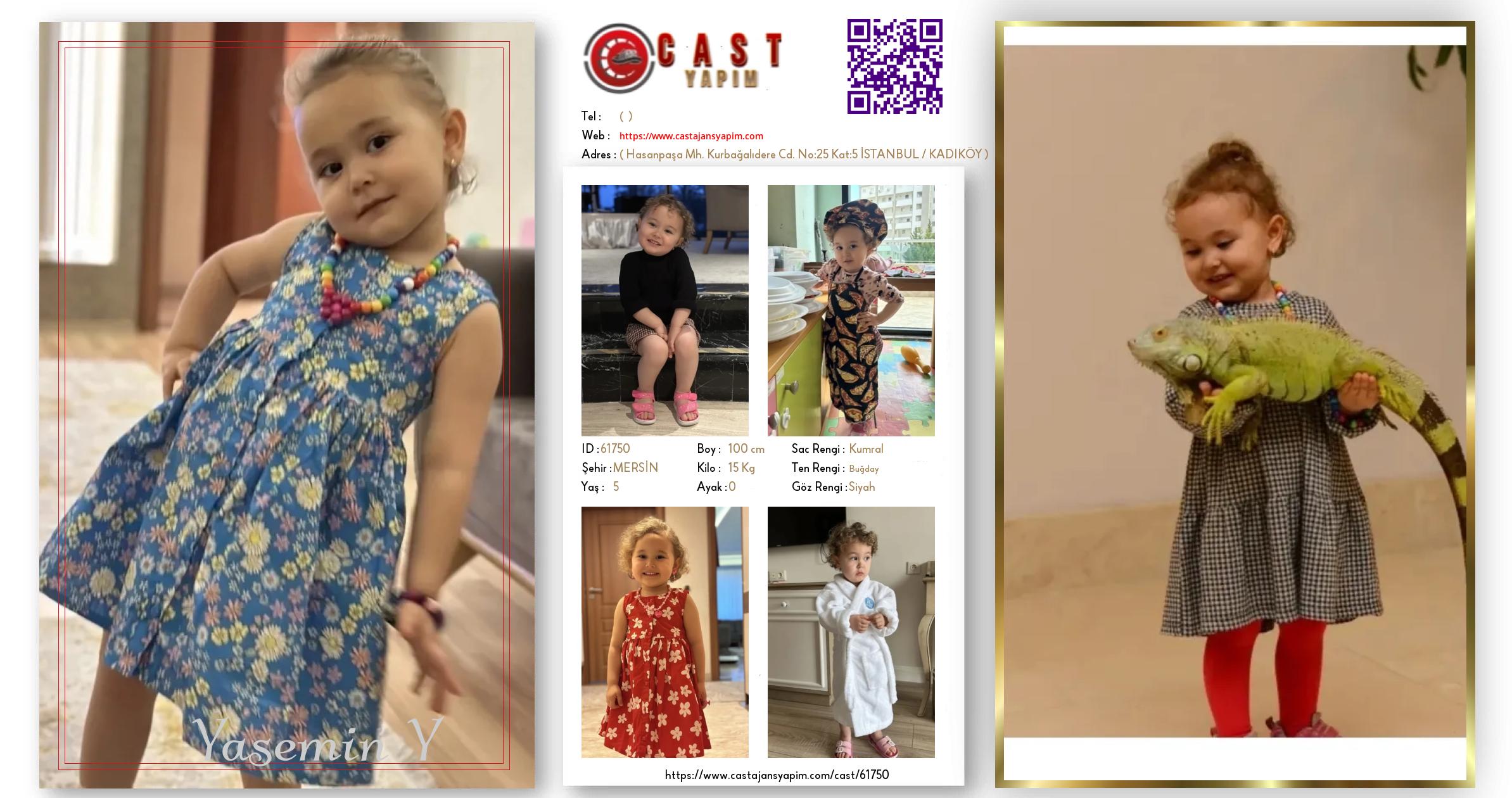 Merhaba, ben Yasemin. MERSİN şehrinde yaşıyorum ve 5 yaşındayım. Genel özelliklerim arasında boyum 100 cm, kilom 15 kg, saç rengim Kumral, göz rengim Siyah, ten rengim Buğday.