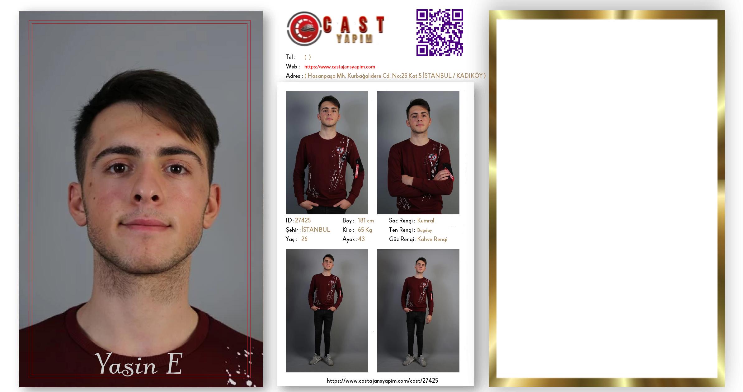 Merhaba, ben Yasin E. İSTANBUL şehrinde yaşıyorum ve 26 yaşındayım. Genel özelliklerim arasında boyum 181 cm, kilom 65 kg, saç rengim Kumral, göz rengim Kahve Rengi, ten rengim Buğday.