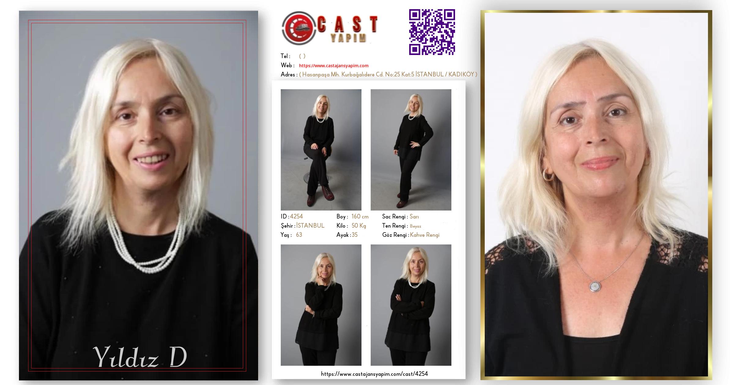 Merhaba, ben Yıldız D. İSTANBUL şehrinde yaşıyorum ve 63 yaşındayım. Genel özelliklerim arasında boyum 160 cm, kilom 50 kg, saç rengim Sarı, göz rengim Kahve Rengi, ten rengim Beyaz.