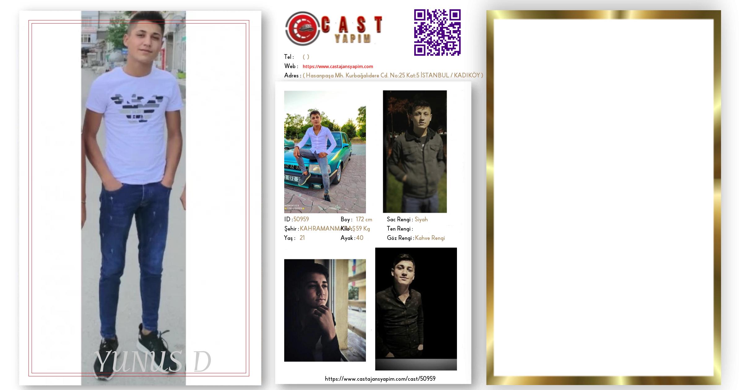 Merhaba, ben YUNUS. KAHRAMANMARAŞ şehrinde yaşıyorum ve 21 yaşındayım. Genel özelliklerim arasında boyum 172 cm, kilom 59 kg, saç rengim Siyah, göz rengim Kahve Rengi.