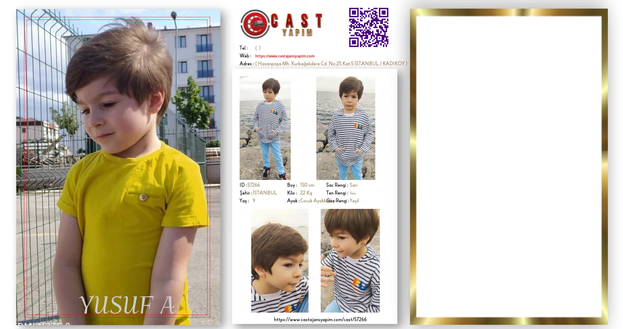 Merhaba, ben YUSUF ENSAR. İSTANBUL şehrinde yaşıyorum ve 9 yaşındayım. Genel özelliklerim arasında boyum 150 cm, kilom 22 kg, saç rengim Sarı, göz rengim Yeşil, ten rengim Sarı.