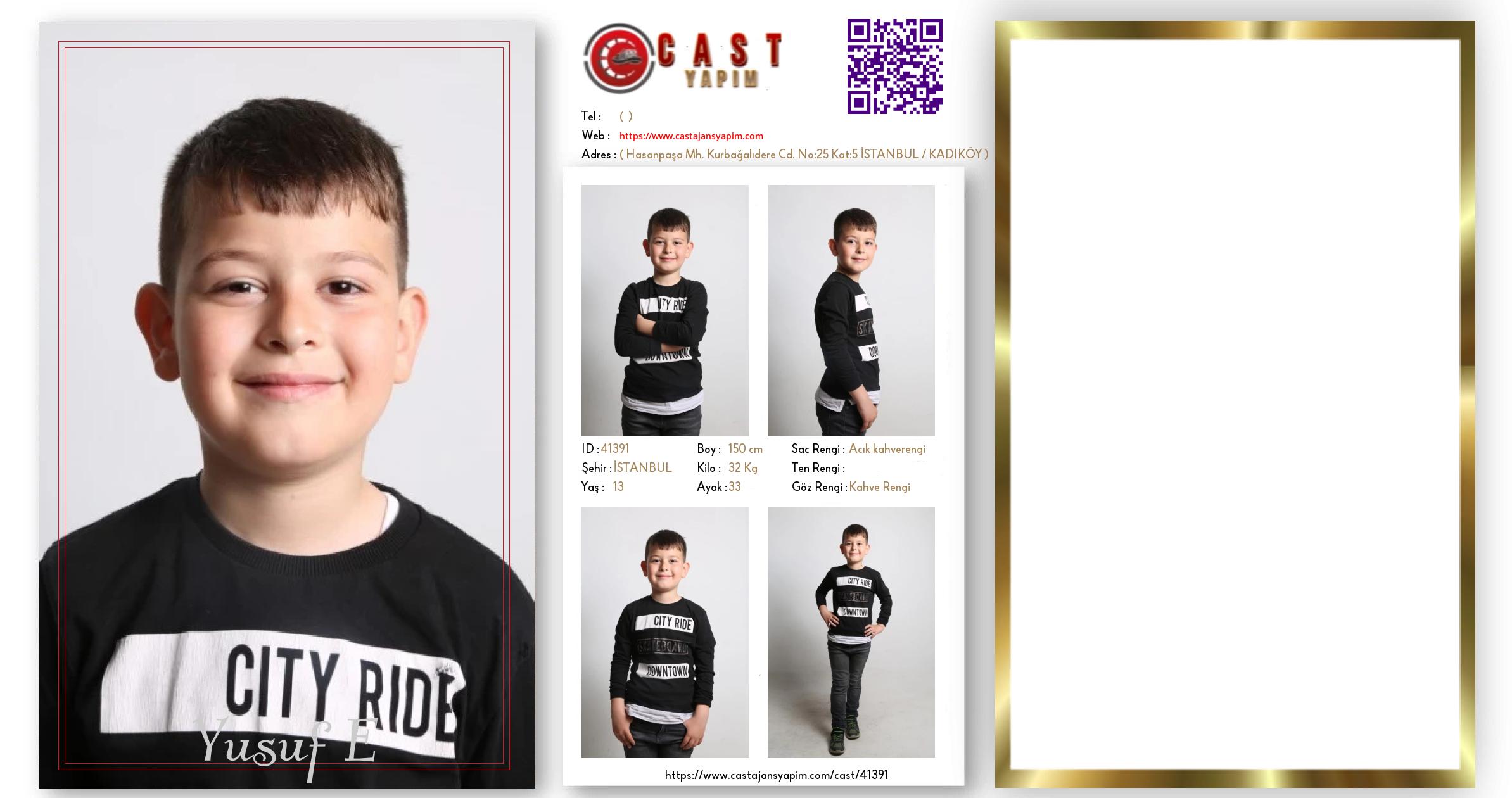 Merhaba, ben Yusuf E. İSTANBUL şehrinde yaşıyorum ve 13 yaşındayım. Genel özelliklerim arasında boyum 150 cm, kilom 32 kg, saç rengim Açık kahverengi, göz rengim Kahve Rengi.