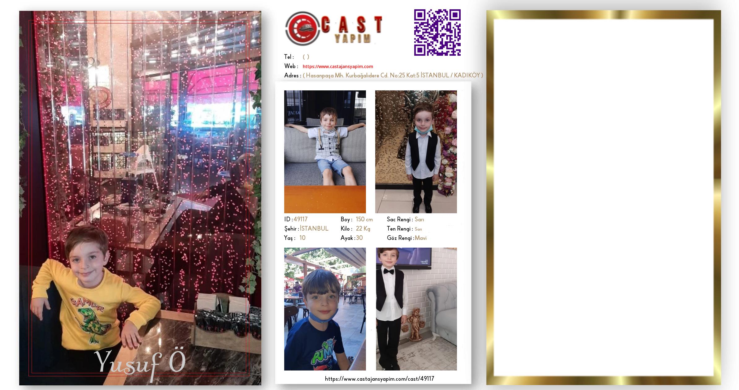 Merhaba, ben Yusuf Baran. İSTANBUL şehrinde yaşıyorum ve 10 yaşındayım. Genel özelliklerim arasında boyum 150 cm, kilom 22 kg, saç rengim Sarı, göz rengim Mavi, ten rengim Sarı.