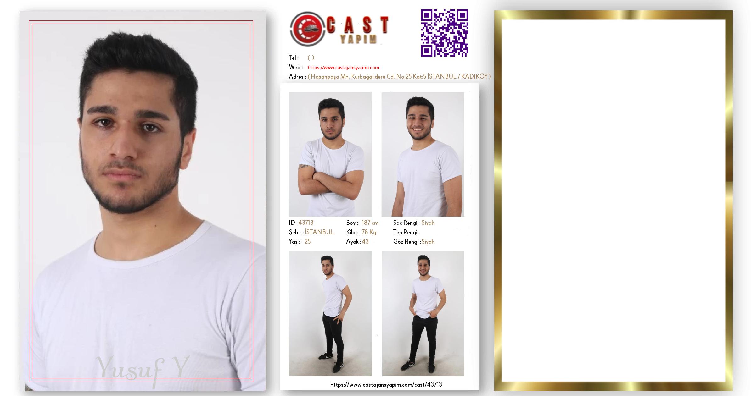Merhaba, ben Yusuf. İSTANBUL şehrinde yaşıyorum ve 25 yaşındayım. Genel özelliklerim arasında boyum 187 cm, kilom 78 kg, saç rengim Siyah, göz rengim Siyah.