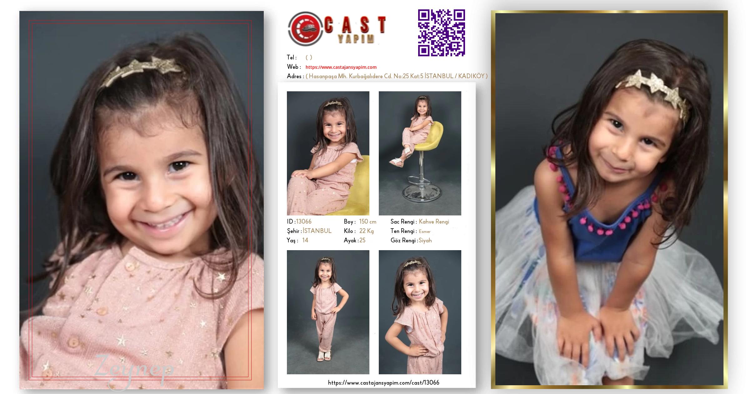 Merhaba, ben Zeynep . İSTANBUL şehrinde yaşıyorum ve 14 yaşındayım. Genel özelliklerim arasında boyum 150 cm, kilom 22 kg, saç rengim Kahve Rengi, göz rengim Siyah, ten rengim Esmer.
