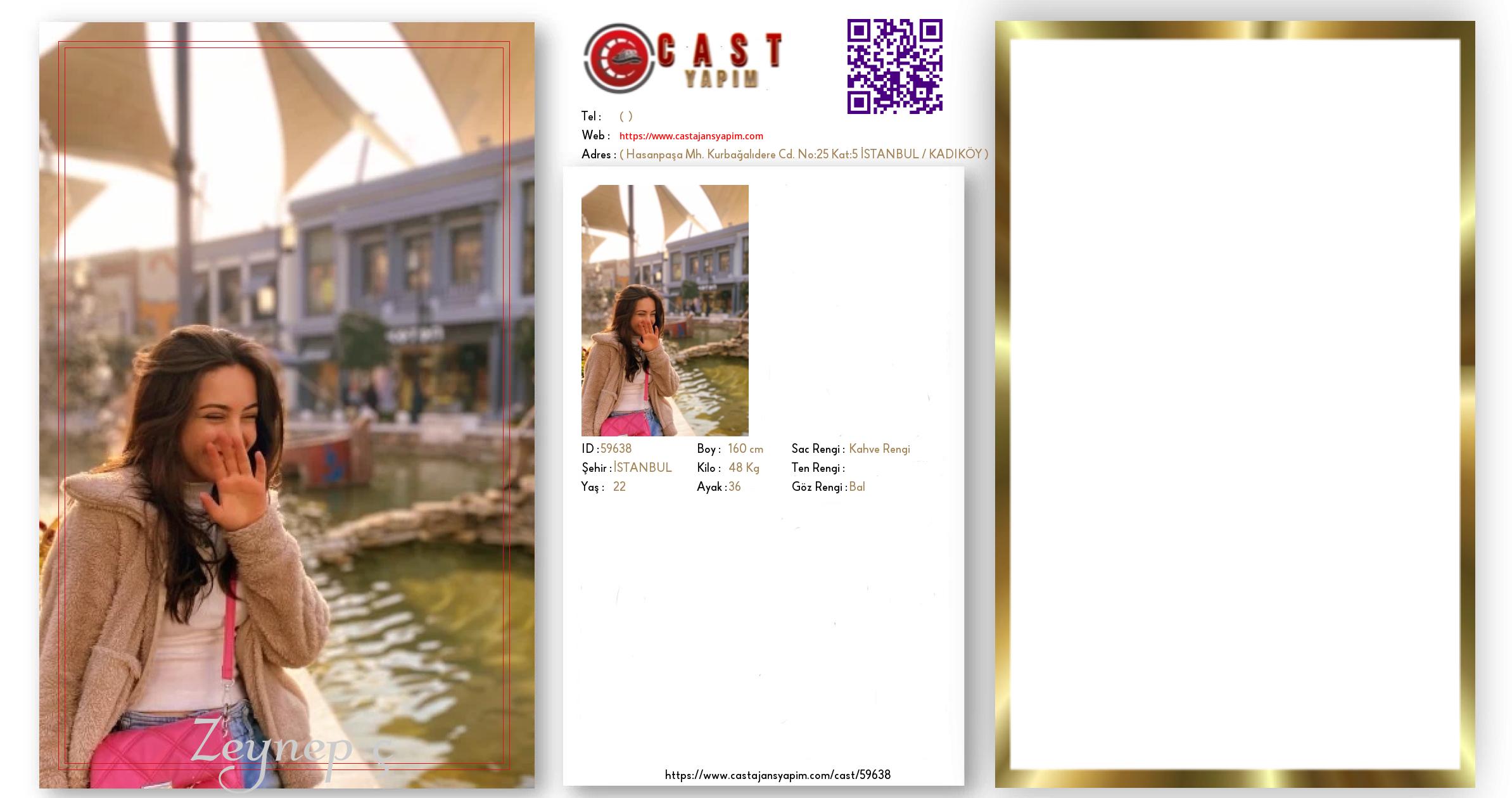 Merhaba, ben Zeynep ç. İSTANBUL şehrinde yaşıyorum ve 22 yaşındayım. Genel özelliklerim arasında boyum 160 cm, kilom 48 kg, saç rengim Kahve Rengi, göz rengim Bal.