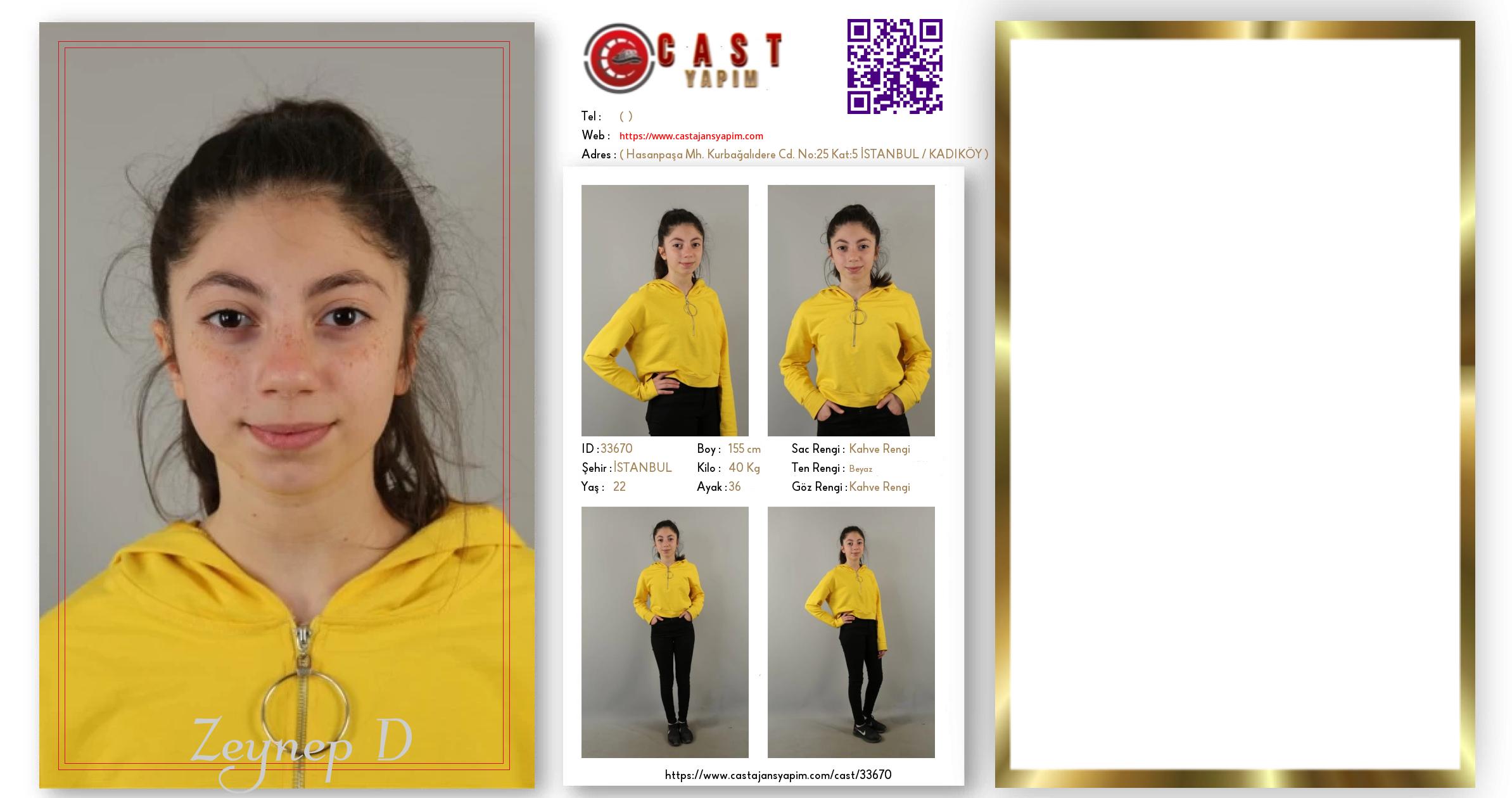 Merhaba, ben Zeynep D. İSTANBUL şehrinde yaşıyorum ve 22 yaşındayım. Genel özelliklerim arasında boyum 155 cm, kilom 40 kg, saç rengim Kahve Rengi, göz rengim Kahve Rengi, ten rengim Beyaz.