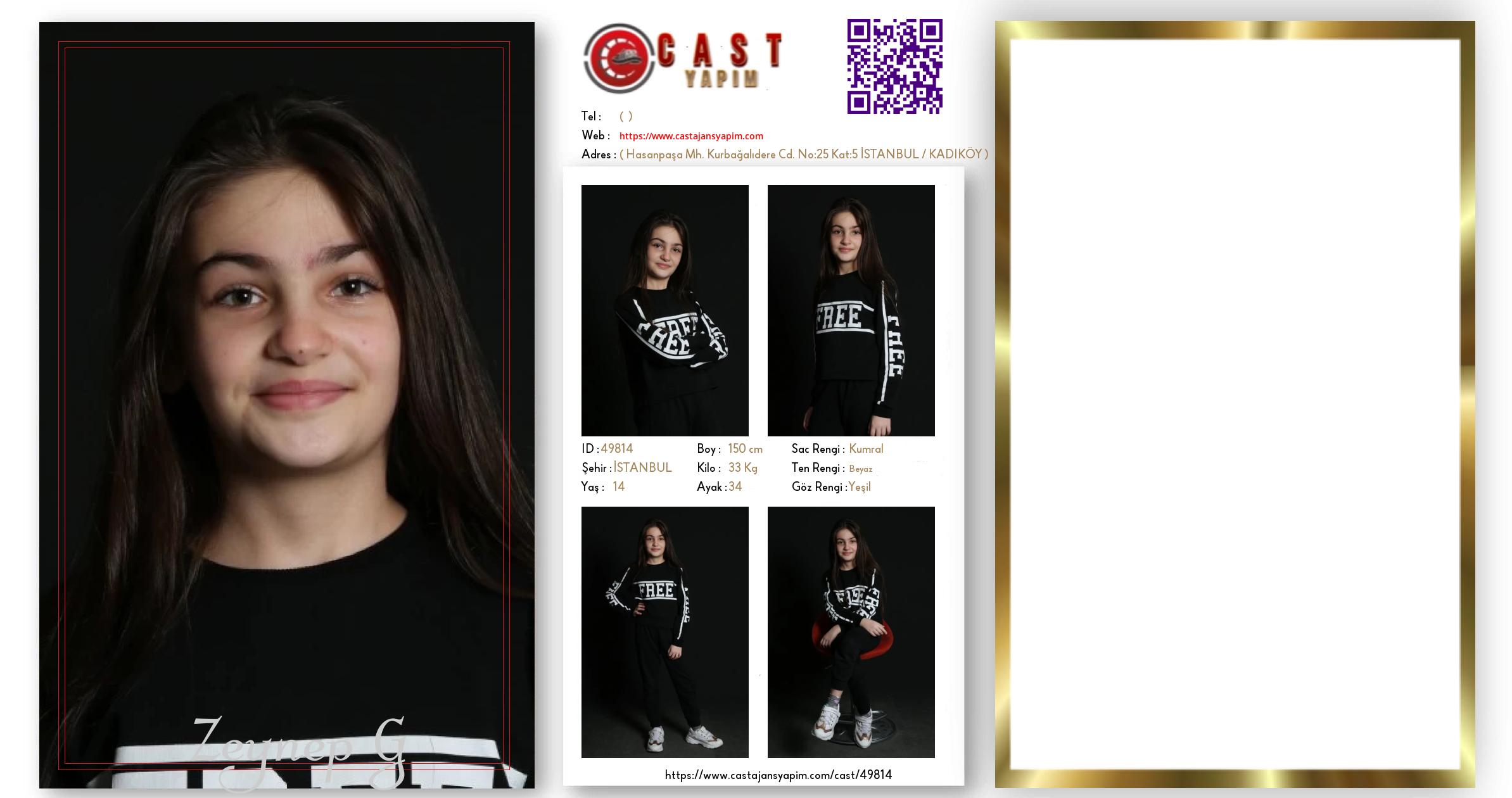Merhaba, ben Zeynep Berra. İSTANBUL şehrinde yaşıyorum ve 14 yaşındayım. Genel özelliklerim arasında boyum 150 cm, kilom 33 kg, saç rengim Kumral, göz rengim Yeşil, ten rengim Beyaz.