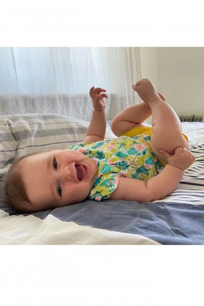 6 aylık kız bebek Güleç uysal ve fotojenik Sarışın renkli gözlü Dönebiliyor yüz üstü kollarının üzerinde durabiliyor henüz emekleme ve yürüme yok destekli oturabiliyor Kıbrısta yaşıyor